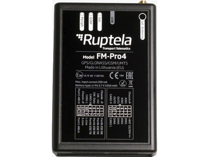 Es un dispositivo de rastreo GPS para vehículos pesados. Este dispositivo está diseñado para el seguimiento de vehículos y tareas de monitoreo y puede obtener información de protocolos CANbus estándar como FMS, J1708 y J1939. El dispositivo se comunica mediante redes GSM (2G), y también está disponible en una versión compatible con UMTS (3G) – FM-Pro4 3G
